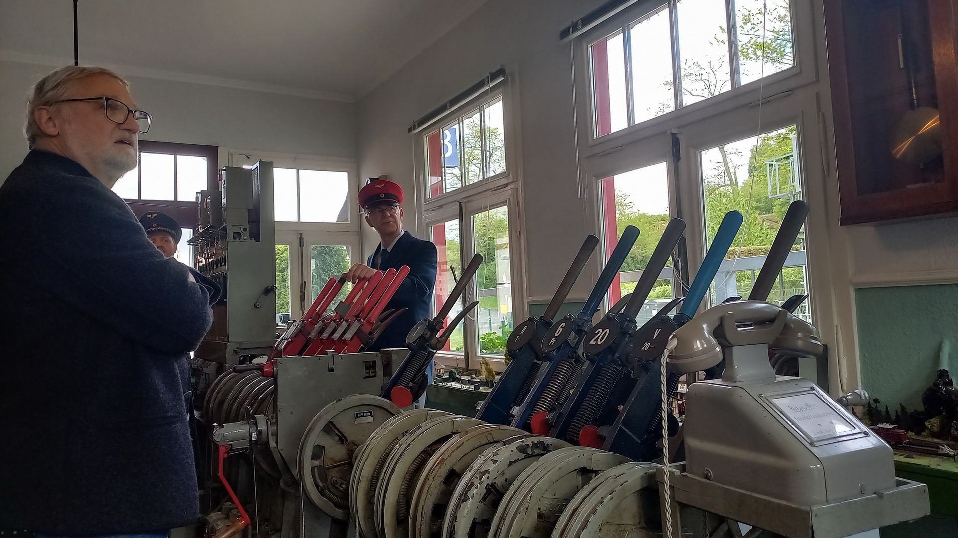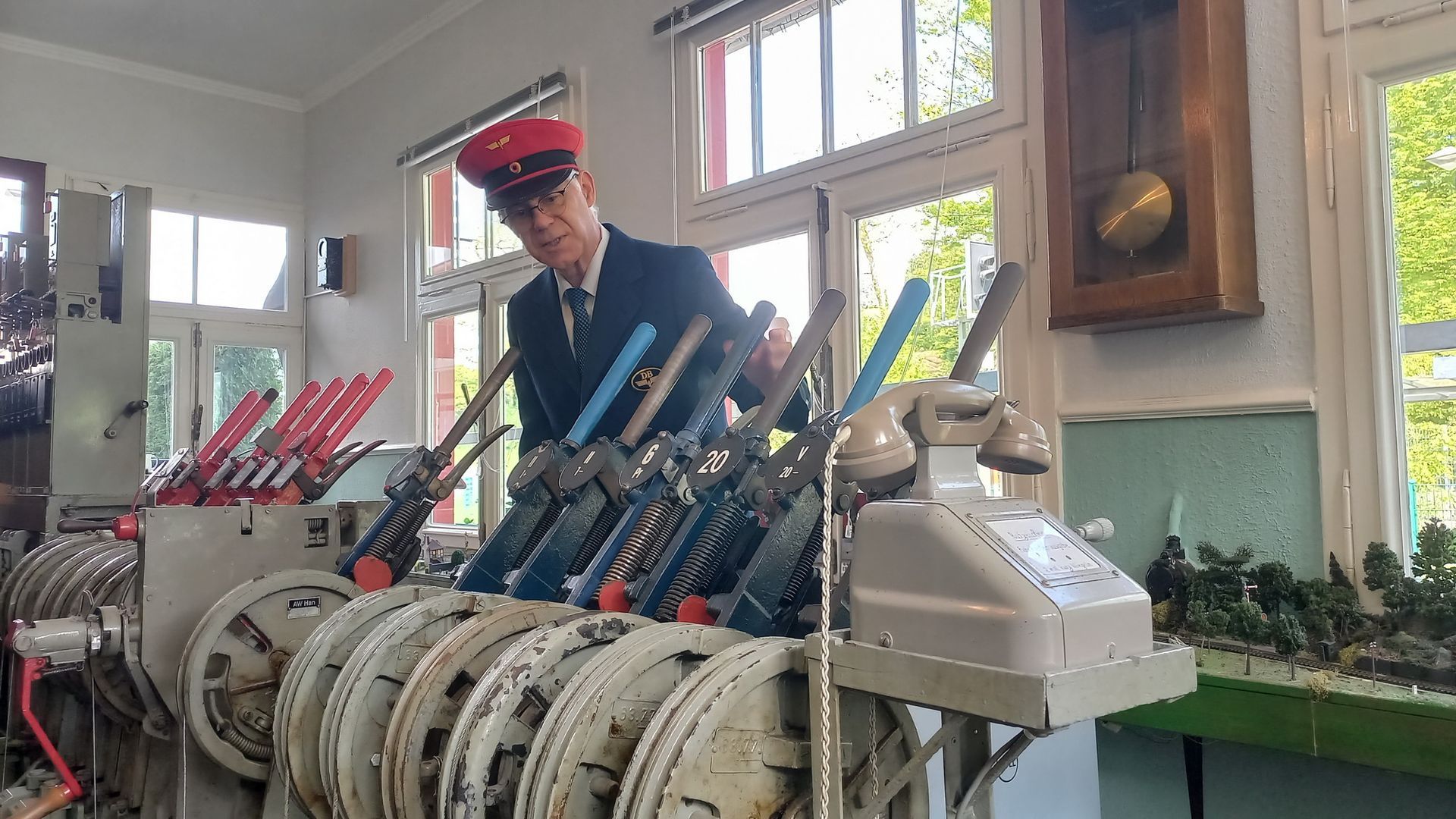 2004 erwarben Albert und Annette Söhngen den Bahnhof – ein echter Glücksfall für alle Eisenbahnfreunde. Albert Söhngen, ehemaliger Fahrdienstleiter bei der Deutschen Bahn, gründete gemeinsam mit Stefan Ingenfeld – den wir noch von unserer Uniformmodenschau kennen – ein kleines Eisenbahnmuseum. Auf der Internetseite wird es als „lebendiges Anfass- und Ausprobiermuseum“ beschrieben – und das ist keine leere Floskel.