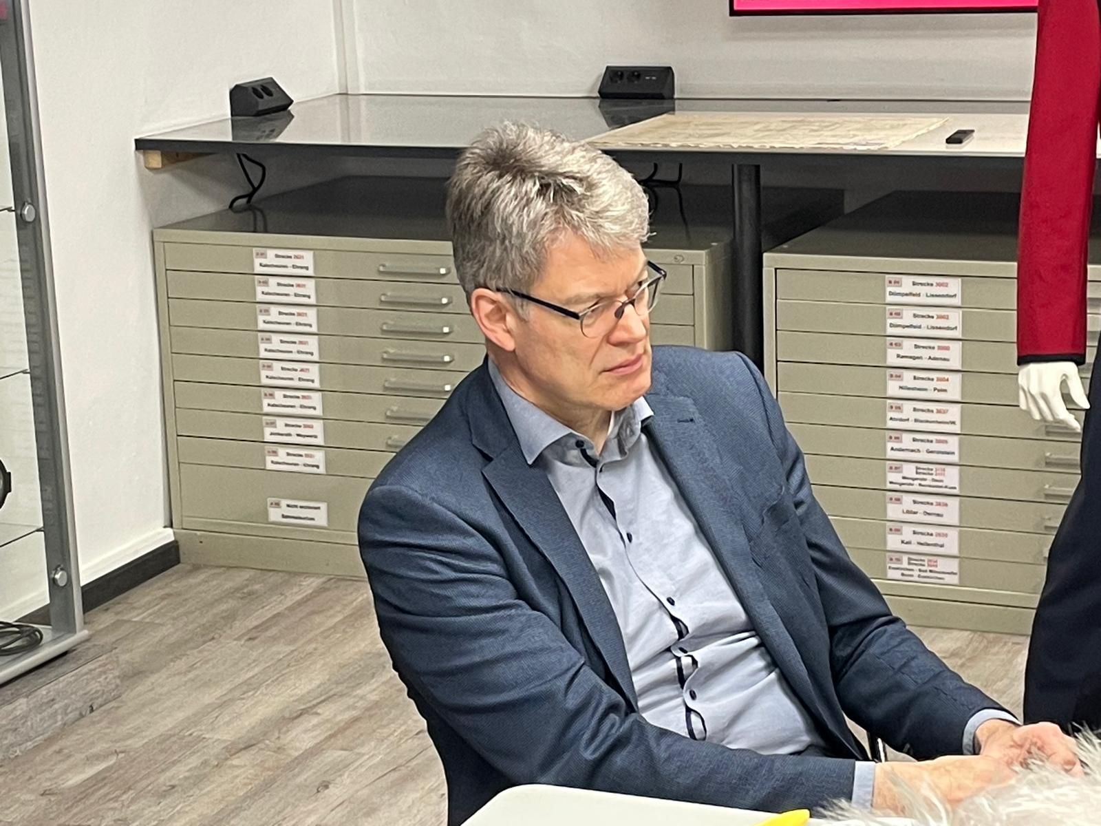Patrick Schnieder ist von Beruf Rechtsanwalt, bezeichnet sich selbst als Eifelkind und ist in der Region verwurzelt. Geboren in Kyllburg, aufgewachsen in Birresborn und jetzt wohnhaft in Arzfeld. Dort war er zehn Jahre Verbandsbürgermeister. Mehr Eifel geht kaum und auch deshalb haben wir uns sehr über den Besuch gefreut, denn auch wir sind heimatverbunden und kümmern uns deshalb intensiv um die Bewahrung und Aufarbeitung der regionalen Eisenbahngeschichte.